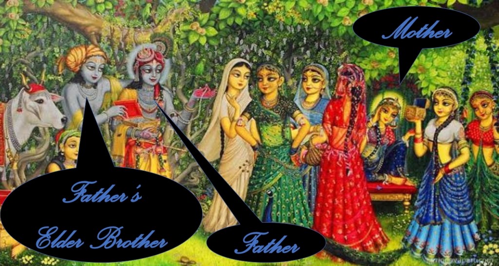 “Krishnā” is our Mother Rādhārānī’s Husband, our Father. “Rāmā” is our Mother’s Husband’s Elder Brother or Krishnā’s Elder Brother. “Hare” is our Mother Rādhārāni’s name.